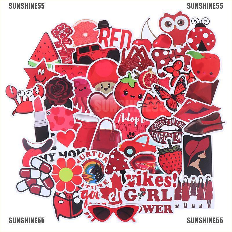 Sun55 50pcs Stiker Decal Gambar Kartun Perempuan Warna Merah