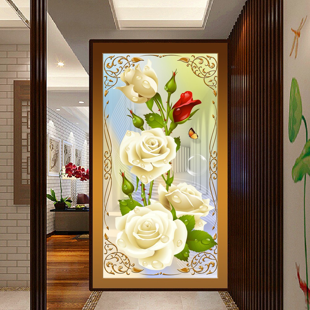 Lukisan Dinding 5d Diamond Diy Motif Mobil Bunga Mawar Untuk