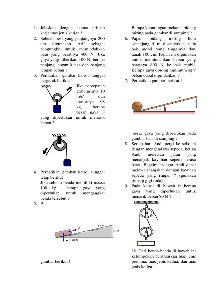 Soal Ulangan Pesawat Sederhana Kelas 8d