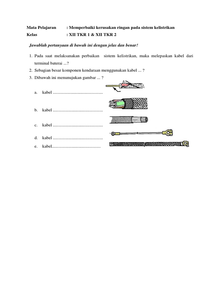 Soal Uas Memperbaiki Kerusakan Ringan Kelistrikan Mobil Docx