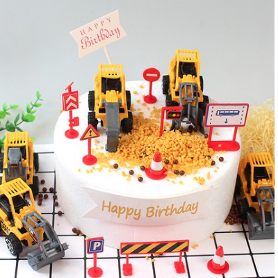 Construction Themed Cake Toppers Warning Board Excavator Tractor
