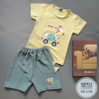 0471 Sad Setelan Lucu Anak Cowok Gambar Kartun Donkey Naik Mobil