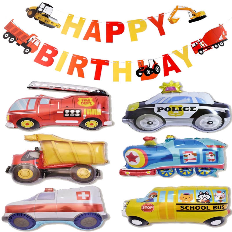 Diy Kartun Balon Mobil Truk Pemadam Kebakaran Mobil Kereta Foil