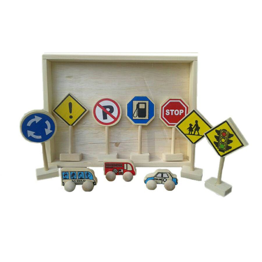 Mainan Edukasi Rambu Rambu Lalu Lintas Plus Mobil Kayu Shopee