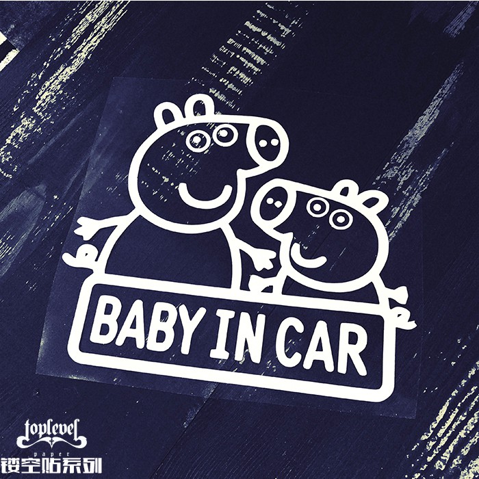 Stiker Decal Motif Bayi Peppa Pig Tulisan Love Baby In Car Gambar