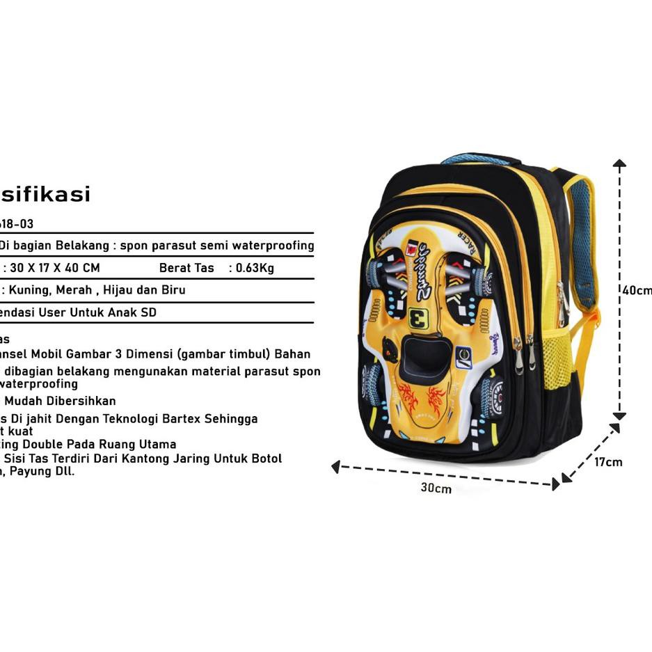 Tas Sekolah Anak Sd Laki Laki Karakter Mobil Balap Gambar Timbul