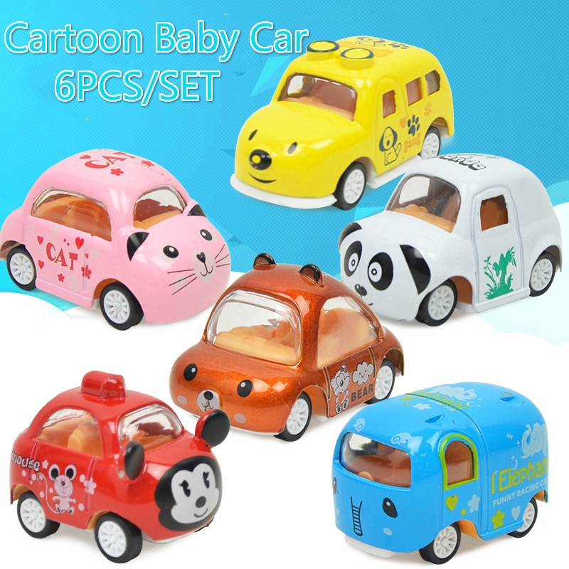 6pcs Set Pull Back Car Toy Bayi Kartun Menarik Kembali Model Mobil