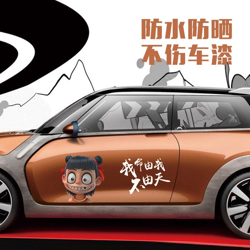 Stiker Decal Mobil Motif Kartun Tulisan Mandarin Warna Hitam Putih