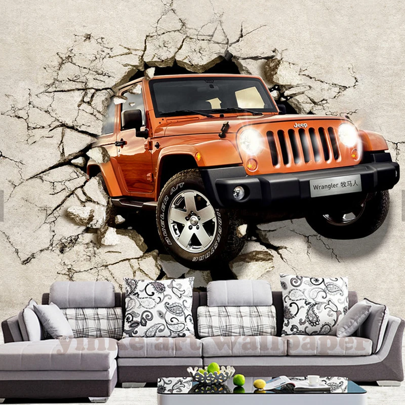 Custom Mural Wallpaper 3d Cartoon Jeep Car Broken Wall Fresco
