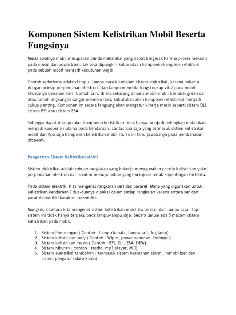 Materi Sistem Kelistrikan Mobil Terlengkap Pengertian Komponen