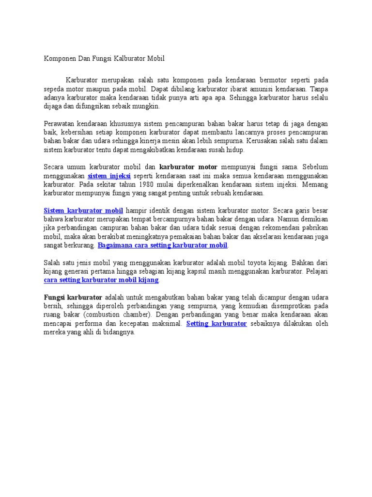 10 Komponen Karburator Mobil Dan Fungsinya Showroom Mobil