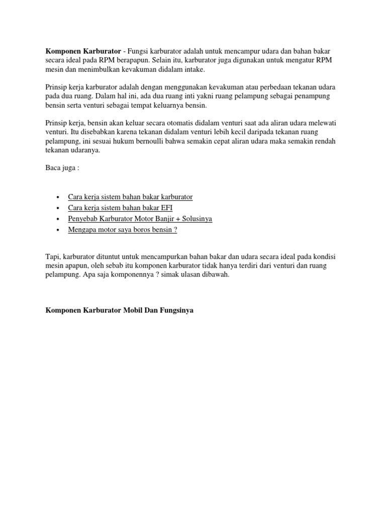 Komponen Karburator Mobil Beserta Gambarnya Archives Dokter Mobil