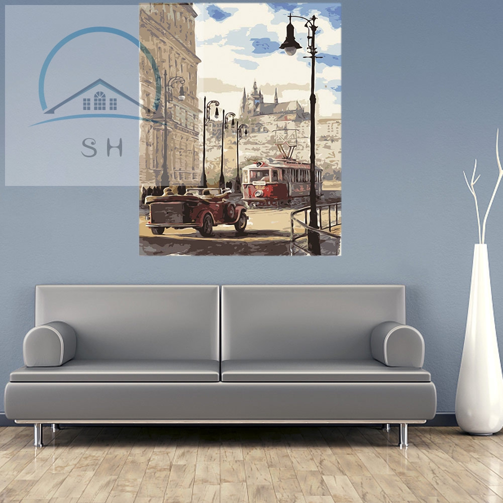 Lukisan Cat Minyak Gambar Mobil Bahan Kanvas Untuk Dekorasi Rumah