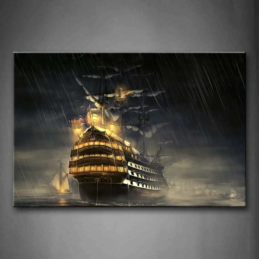 1 Pic Bingkai Dinding Seni Gambar Kapal Air Hujan Hari Kanvas