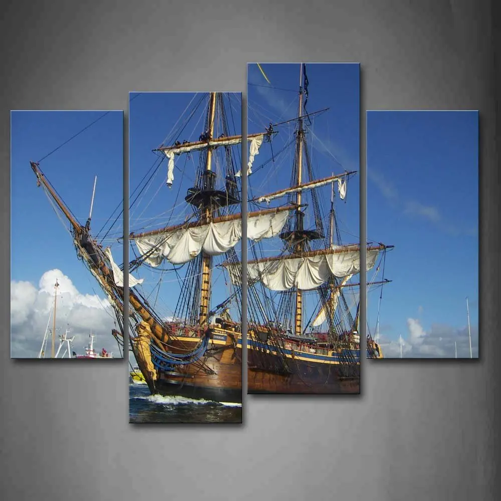 Kapal Dengan Bahan Kayu Pada Air Tinggi Wall Art Painting Gambar