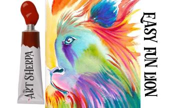 Easy Painting In Acrylic Of A Colorful Lion Using 5 Primary Colors