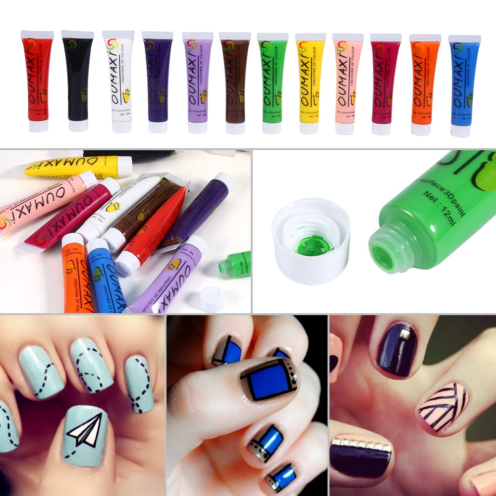 12 Colors Acrylic Paint Nail Art Polish 3d Paint Decor Design Tips