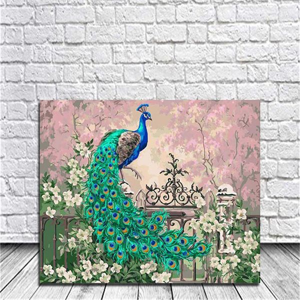 Chenistory Frameless Peacock Animals Diy Painting By Numbers Kits